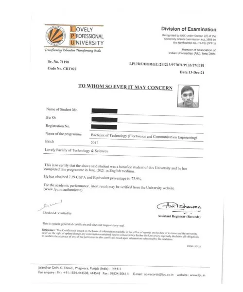 For students planning to study abroad, this certificate serves as proof of their current or past association with a recognized institution. It typically includes details such as the student’s name, course, duration, and enrollment status.Â